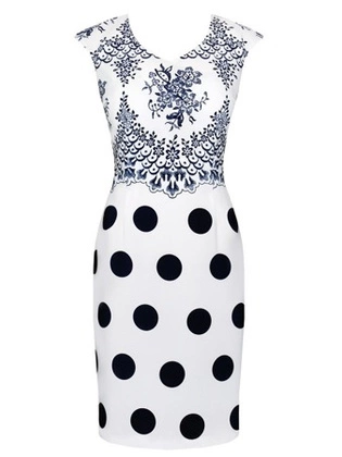 Sukienka wieczorowa Belinda, elegancka kreacja w grochy