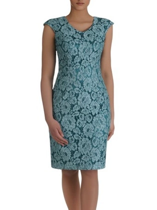 Sukienka wykończona koronką 15747, kreacja z modnym dekoltem.