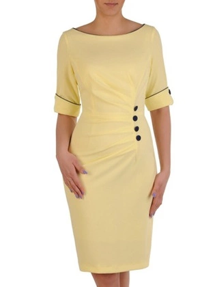 Sukienka wyszczuplająca, żółta kreacja z kontrastowymi wstawkami 20429.