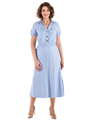 Sukienka kopertowa, modna kreacja z baskinką 36782