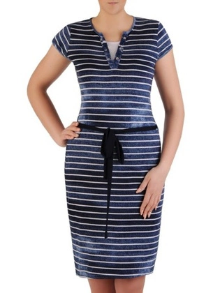 Sportowa sukienka z dzianiny Eliza XVII, letnia kreacja w paseczki.