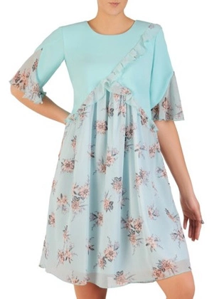 Sukienka z wzorzystego szyfonu, kreacja z ozdobnymi rękawami 21732