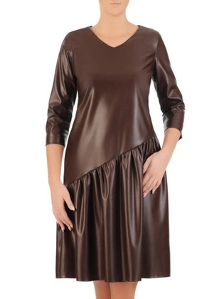 Wizytowa brązowa sukienka z ekologicznej skóry 27842