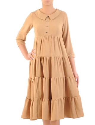 Sukienka z kołnierzem, beżowa kreacja z tkaniny 33333