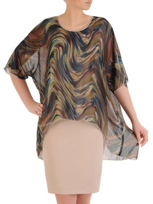 Prosta sukienka w oryginalnym wzorze z modną wstawką na dekolcie 31470