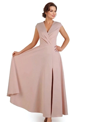 Sukienka na wesele, długa suknia kopertowa, elegancka kreacja z rozcięciem, duże rozmiary 20206
