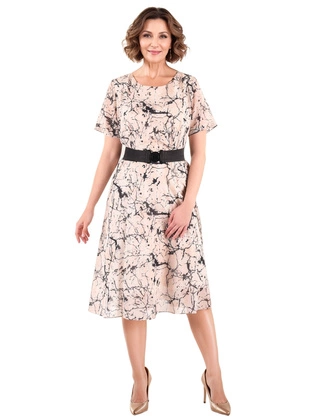 Sukienka wizytowa, wiosenna kreacja z paskiem podkreślającym talię 28951