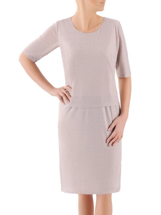 Sukienka damska 15309, beżowa kreacja z modnymi rękawami.