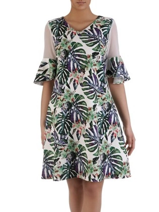 Sukienka w kwiaty z ozdobnymi mankietami 34863