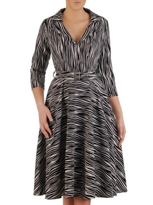 Rozkloszowana sukienka z kołnierzem i paskiem 35906