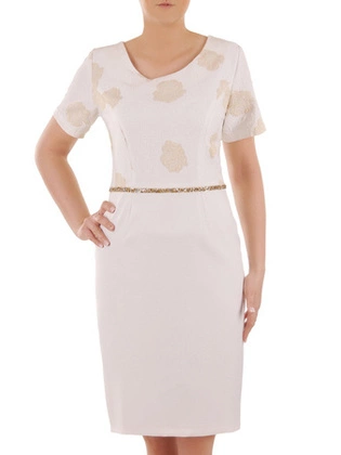 Prosta, żakardowa sukienka w jasnym kolorze 26416