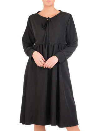 Sukienka damska 19104, czarna kreacja w luźnym fasonie z kieszeniami.
