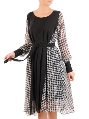 Sukienka z wzorzystego szyfonu, kreacja z ozdobnymi rękawami 31315