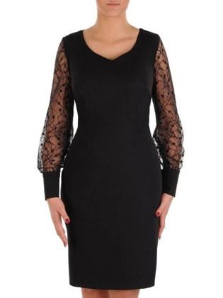 Czarna sukienka z koronkowymi rękawami, elegancka kreacja na wieczór 18964