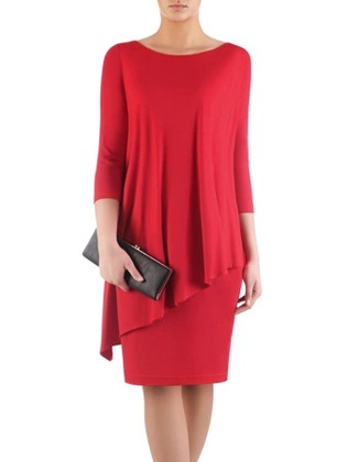 Czerwona sukienka trapezowa, kreacja z plisowanymi rękawami 24272