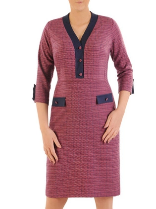 Modna sukienka ze skórzanymi lamówkami 14696, atrakcyjna kreacja wyszczuplająca.