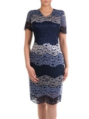 Prosta sukienka, granatowa kreacja z koronkowym tyłem 25971