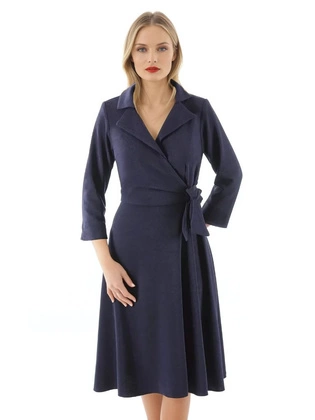 Granatowa sukienka żakietowa z dwurzędowym zapięciem 31069