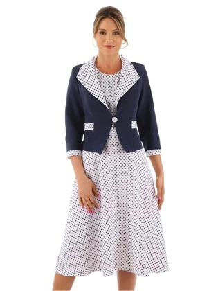 Komplet damski na wesele, komunię, elegancka sukienka w groszki z żakietem, garsonka plus size 38252