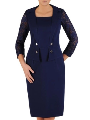 Komplet damski, granatowa sukienka z oryginalnym bolerkiem 33881