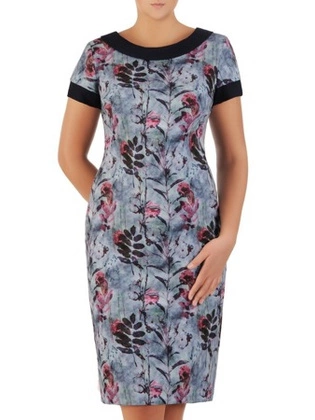 Sukienka wizytowa, prosta kreacja w roślinny deseń 21855