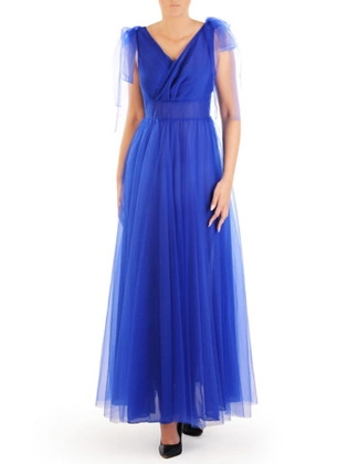 Sukienka maksi z ozdobnymi wiązaniami na ramionach 33977