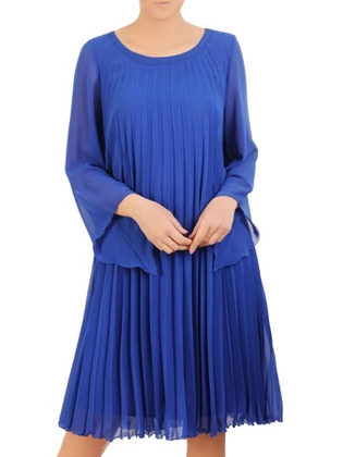 Szyfonowa sukienka z marszczoną zakładką, chabrowa kreacja na wesele 37072