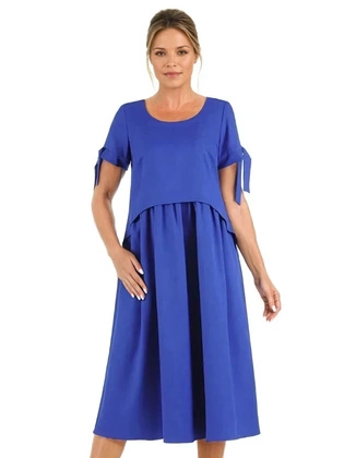 Rozkloszowana sukienka Izaura II, kreacja w kolorze chabrowym.