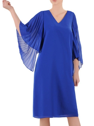 Luźna sukienka z szyfonu, chabrowa kreacja z ozdobnym topem 35417
