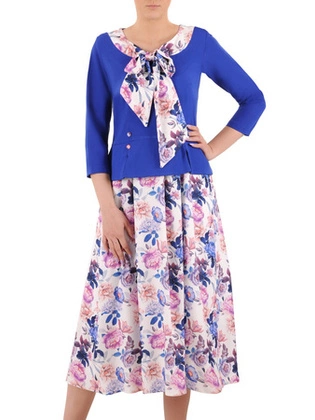 Sukienka damska Jolanta I, chabrowa kreacja z modną baskinką.
