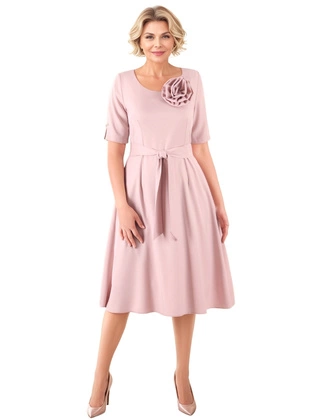 Sukienka damska 19326, pudrowa kreacja w modnym fasonie.