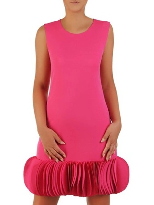 Amarantowa sukienka z efektownie wykończonymi rękawami 20867