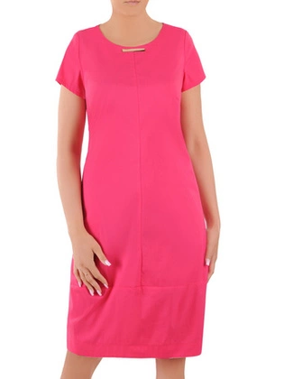 Lniana sukienka z ozdobnie wyciętym dekoltem 29362