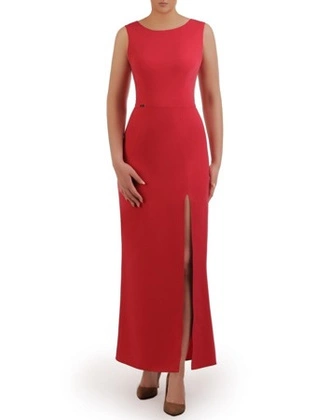 Suknia wieczorowa, koralowa kreacja z rozcięciem 20666