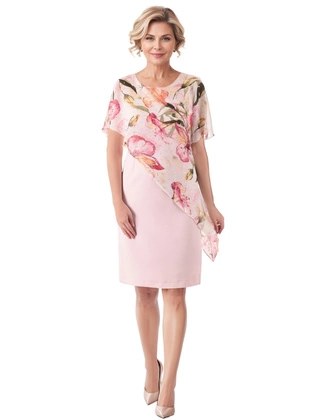 Pudrowa sukienka z asymetryczną narzutką z szyfonu 35989