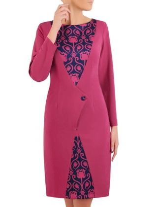 Prosta sukienka z oryginalnym wzorem, kreacja wyszczuplająca brzuch 34706