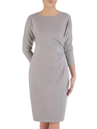 Modna sukienka z efektownym dekoltem Aldena III, popielata kreacja wizytowa