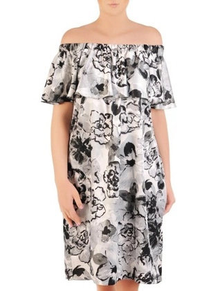 Letnia sukienka hiszpanka, kreacja w kontrastowe kwiaty 29964