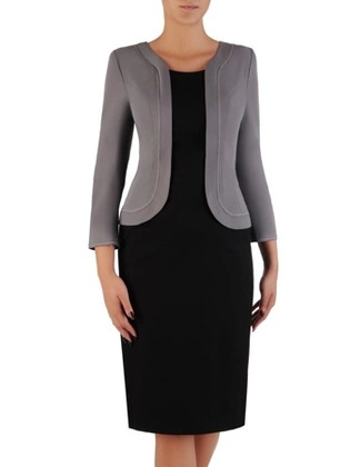 Sukienka 2w1 18721, elegancka szara kreacja z krótkim bolerkiem