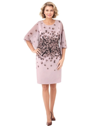 Oryginalna sukienka damska z szyfonowymi rękawami i ozdobnym dekoltem 34031