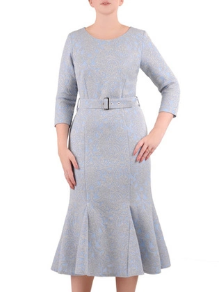 Brokatowa, popielata sukienka maskująca biodra 26929