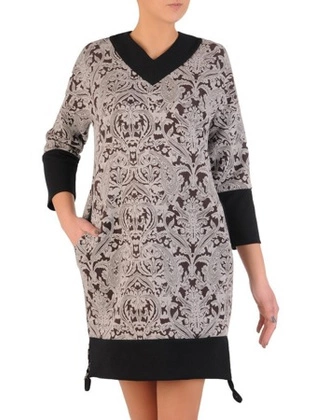 Sukienka damska w oryginalnym wzorze z kieszeniami 28608