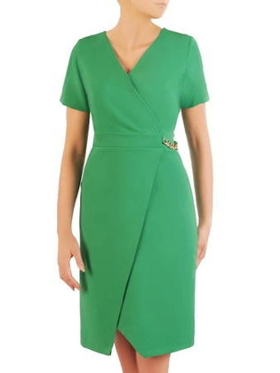 Elegancka, kopertowa sukienka z ozdobnym łańcuszkiem w pasie 33671
