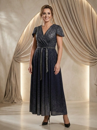 Błyszczące materiały mogą optycznie dodawać objętości, dlatego paniom o pełniejszych kształtach polecamy fasony kopertowe, matowe z lekkim połyskiem lub modele z ciemniejszymi wstawkami po bokach.