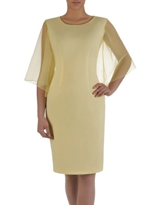 Żółta sukienka z dekoracyjnymi rękawami 15870, lekka kreacja z szyfonu.