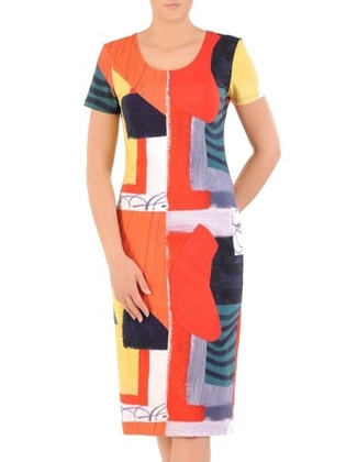 Sukienka z bawełny, prosta kreacja w kolorowe wzory 30082