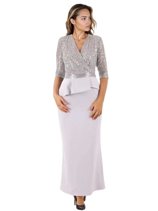 Sukienka z szyfonową narzutką, wyszczuplająca kreacja z cekinami 23635