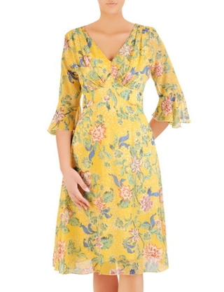 Rozkloszowana, podkreślająca biust sukienka w wiosennych kolorach 32869