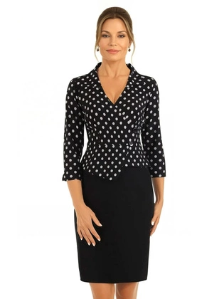 Komplet damski na wesele, komunię, elegancka sukienka w groszki z żakietem, garsonka plus size 38252