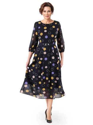 Sukienka z tkaniny, wyszczuplająca kreacja w kolorowe groszki 25037